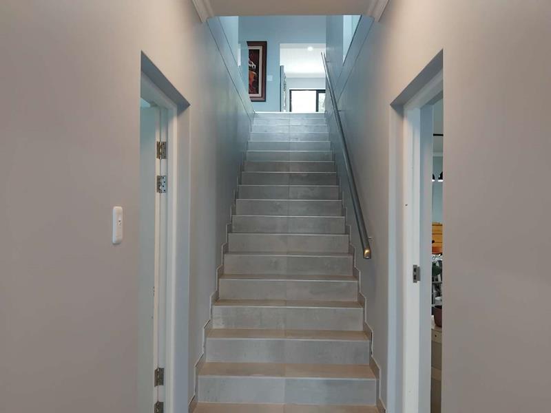 On the top level, you'll find a beautifully modern open-plan kitchen, complete with a spacious scullery and pantry. Equipped with a gas stove, the kitchen ensures a seamless cooking experience. Adjacent to the kitchen is a generous living area that opens onto a large balcony, ideal for entertaining while enjoying the refreshing ocean breeze. A designated braai room flows onto the full balcony, offering stunning views of the seascape and creating a perfect setting for relaxing afternoons.