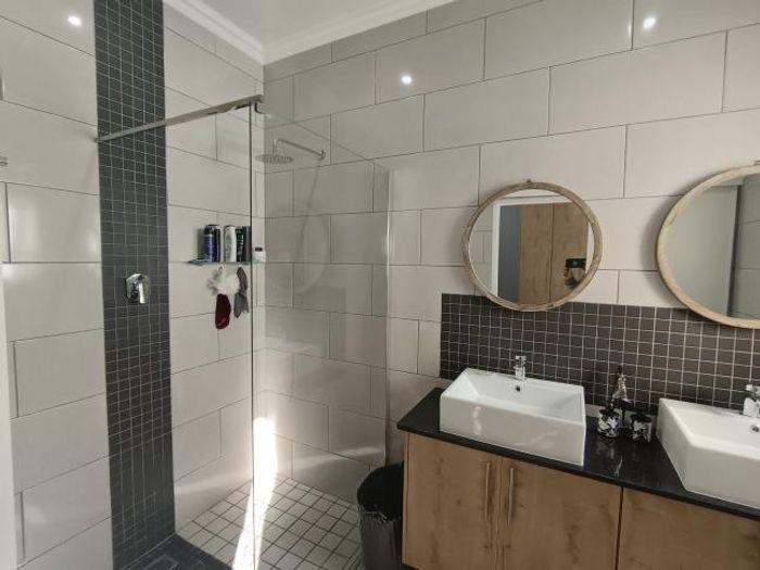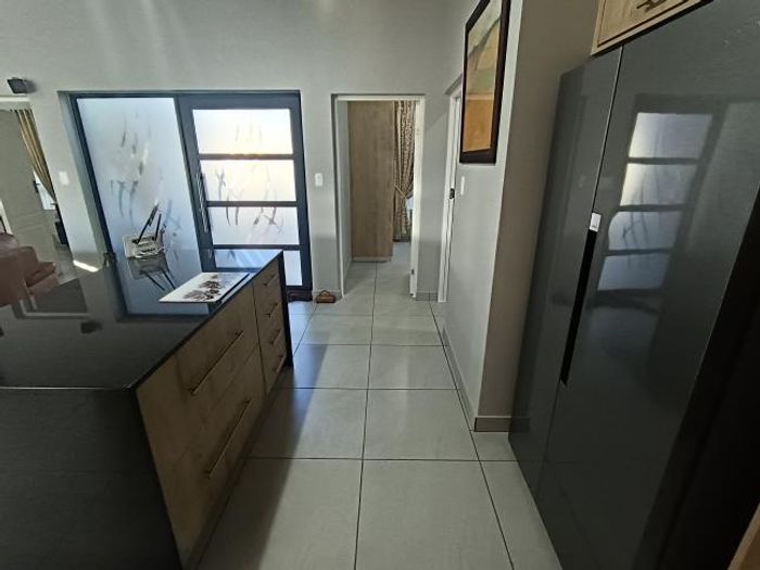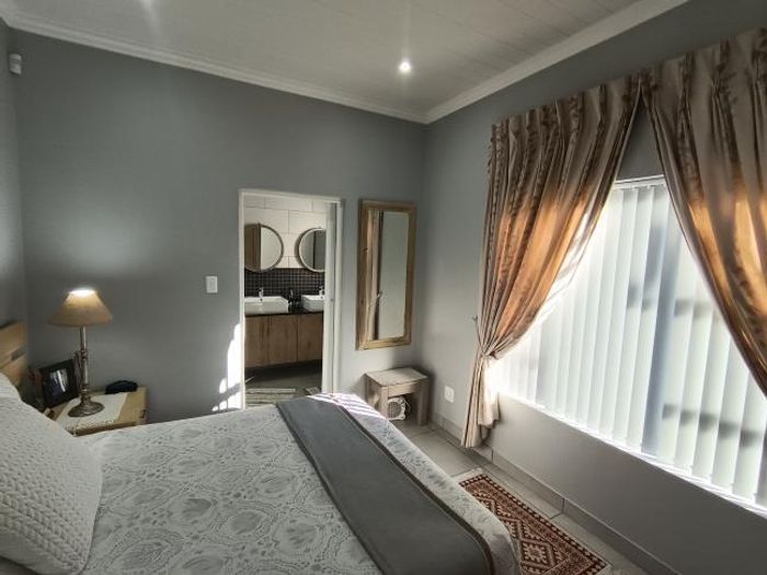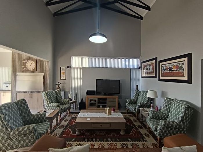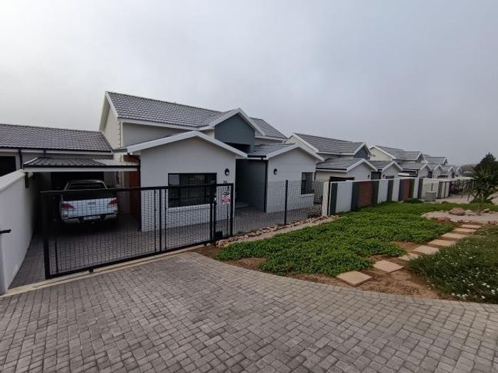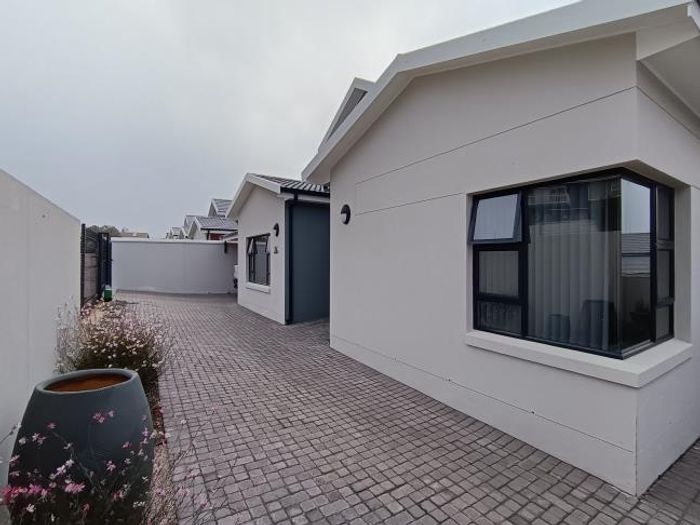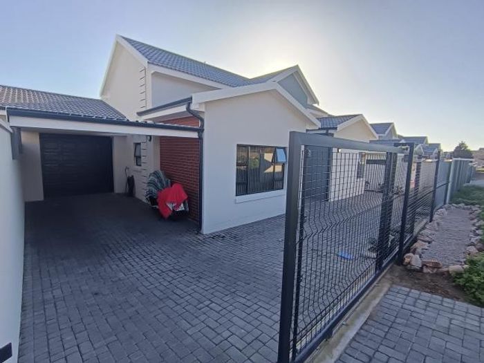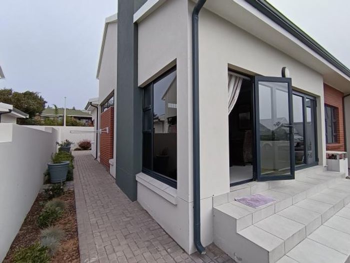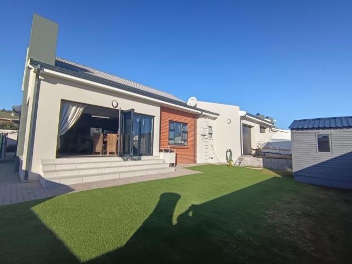 Easy coastal living in Hartenbos Heuwels with sunny open-plan interiors, landscaped north-facing garden and built-in braai — modern kitchen, three bedrooms, two bathrooms and caravan-friendly garage.