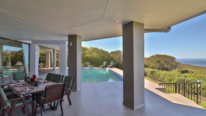 The residence has four ensuite bedrooms; two with private balconies, and two opening to patios with ocean- and green belt views. The main bedroom is a sanctuary within itself, featuring a spa bath, walk-in closets, and a wrap-around balcony with views over the Golf Estate and full sea views. Bedrooms are generously sized and offers ample space for cosy lounging and winding down after a long day.